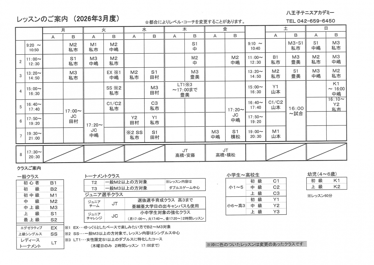 すべて 大会風景 特別イベント スケジュール ジュニアチチャレンジ 最新チラシ ジュニアチーム・ジュニアチャレンジ JT・JCページ 紹介キャンペーン レディーストーナメントクラス 2024 月例イベント情報 ジュニアイベント キャンプ 限定イベント 2026/02/01 スケジュール スケジュール2026年(3月)を更新致しました。 詳細