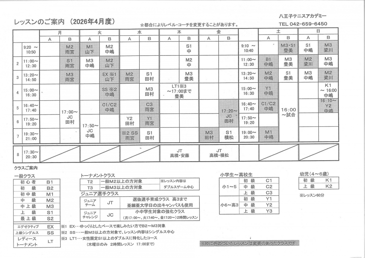 すべて スケジュール 大会風景 特別イベント ジュニアチチャレンジ 最新チラシ ジュニアチーム・ジュニアチャレンジ JT・JCページ 紹介キャンペーン レディーストーナメントクラス 2024 月例イベント情報 ジュニアイベント キャンプ 限定イベント 2026/04/01 スケジュール スケジュール2026年(4月)を更新致しました。 詳細